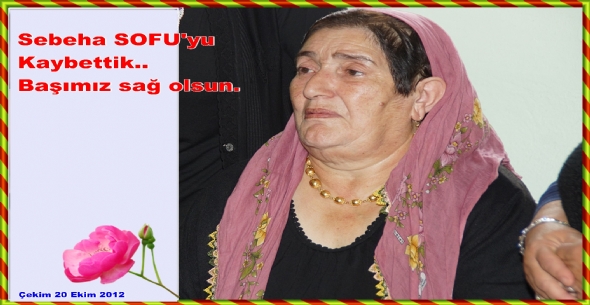 Bu gün aldığımız acı bir habere göre, bir yıldır rahatsız olan Sebiha SOFU'yu kaybetik... Merhmuye Tanrıdan rahmet ve kederli yakınlarına sabır ve başsağlığı dileriz.